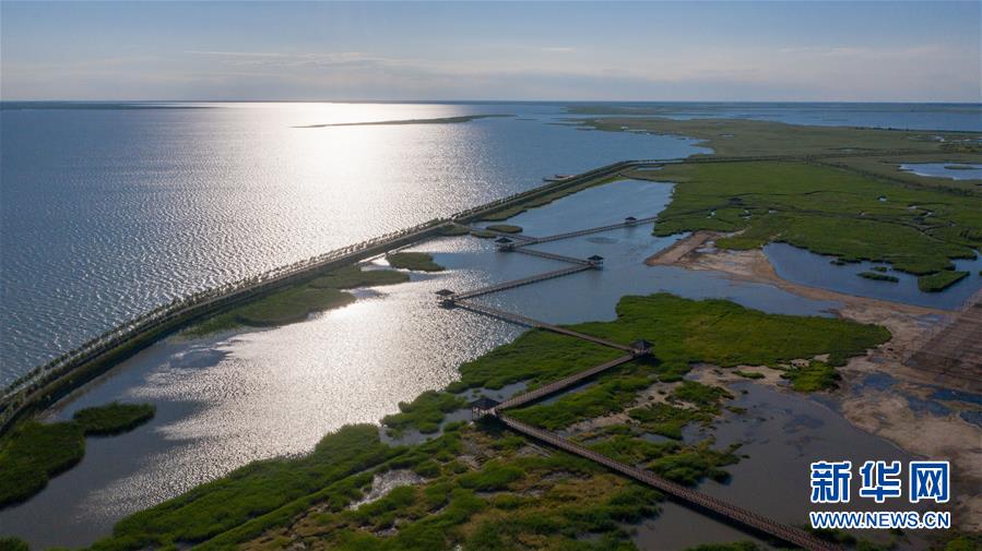 這是查干湖濕地(7月20日攝,無(wú)人機(jī)照片)。新華社記者張楠攝