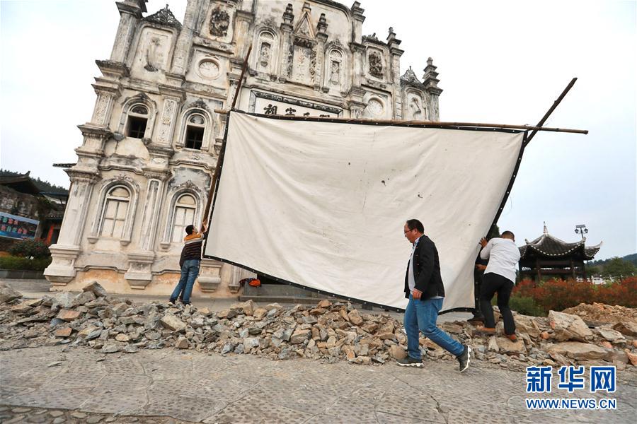 2019年3月19日,在天柱縣坌處鎮(zhèn)三門塘村,黃宜?。ㄖ校┰诖罱娪安シ拍徊肌6弊迩嗄挈S宜印是貴州省黔東南苗族侗族自治州天柱縣的一名公益電影放映員。從2014年起,他常年行走在大山里,為山區(qū)群眾播放電影。僅2018年,黃宜印就在天柱縣的37個(gè)村寨播放電影444場(chǎng)。新華社記者歐東衢攝