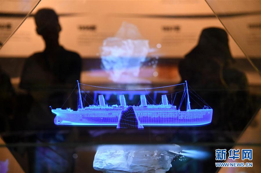 2019年8月28日,參觀者在電影博物館內(nèi)觀看“泰坦尼克號(hào)”數(shù)字模型全息演示。當(dāng)日,2019青島國際影視博覽會(huì)舉行青島電影博物館探館活動(dòng)。新華社記者李紫恒攝