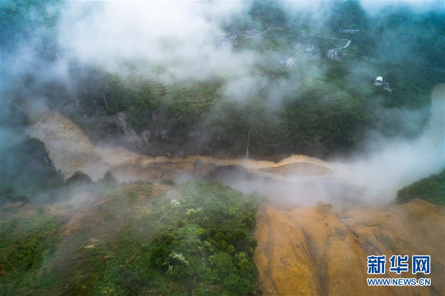 7月21日拍攝的因恩施州屯堡鄉(xiāng)馬者村山體滑坡形成的堰塞湖(無人機(jī)照片)。當(dāng)日,湖北恩施土家族苗族自治州屯堡鄉(xiāng)馬者村沙子壩滑坡體出現(xiàn)大面積滑移,形成堰塞湖,上游水位已上漲5米左右。目前,相關(guān)部門和鄉(xiāng)鎮(zhèn)正在組織形成堰塞湖后可能受影響區(qū)域的群眾轉(zhuǎn)移和交通管控工作。大龍?zhí)端畮?kù)正在加快騰庫(kù),最大限度保證廣大群眾生命財(cái)產(chǎn)安全。新華社記者肖藝九攝