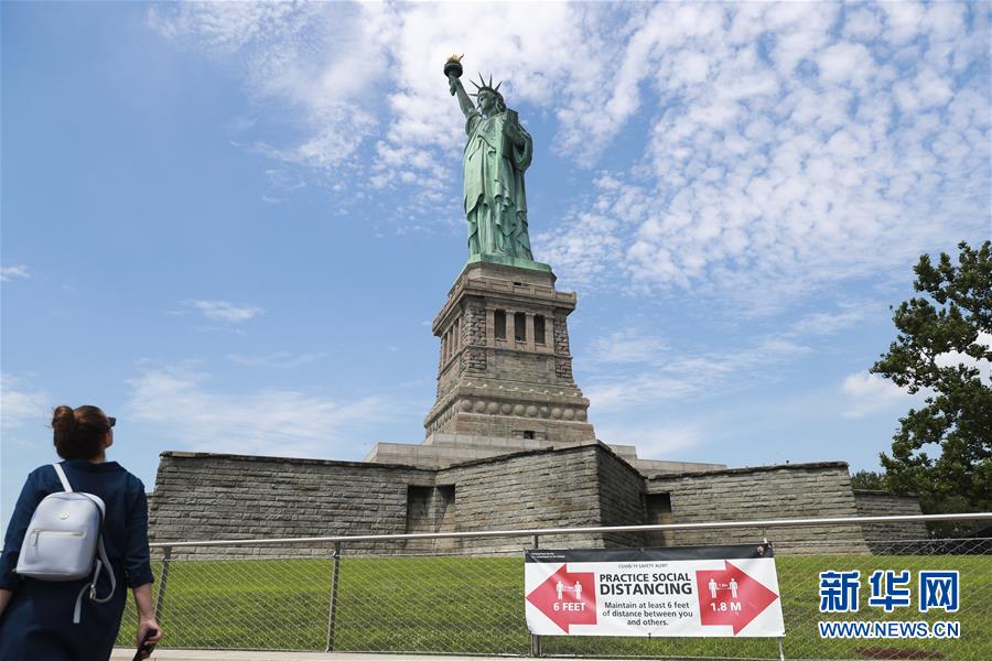 7月20日,參觀者在美國紐約自由島游覽。美國紐約市20日繼續(xù)推進(jìn)經(jīng)濟(jì)重啟計(jì)劃,宣布開始進(jìn)入解封新階段,進(jìn)一步允許部分低風(fēng)險(xiǎn)文娛活動重啟。自由女神像所在的自由島對公眾開放,但雕像內(nèi)部和博物館仍關(guān)閉。新華社記者王迎攝