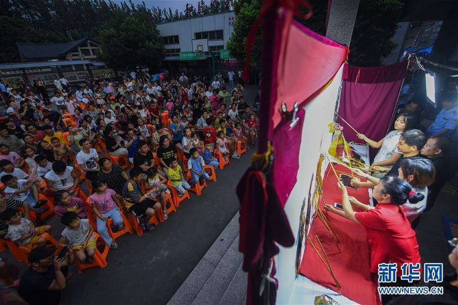 當(dāng)日,浙江省杭州市余杭區(qū)塘棲鎮(zhèn)河西埭村“衛(wèi)家班皮影戲”劇團(tuán)的藝人們來到余杭區(qū)喬司街道和睦橋村進(jìn)行演出,這是近期杭州市余杭區(qū)夏季鄉(xiāng)村“文化走親”的重要活動之一。今年6月開始,杭州市余杭區(qū)塘棲鎮(zhèn)組織多支文化表演團(tuán)體以“文化走親”的形式,先后送戲到余杭區(qū)近20個鄉(xiāng)村文化禮堂,豐富夏日鄉(xiāng)村百姓文化生活。在余杭塘棲一帶,歷史上曾活躍著一支以演出皮影戲出名的民間戲班子,號稱“衛(wèi)家班”。2016年,塘棲鎮(zhèn)河西埭村在文化禮堂的建設(shè)過程中,將當(dāng)?shù)貍鹘y(tǒng)的“衛(wèi)家班皮影戲”作為“一村一品”特色項目進(jìn)行了搶救性保護(hù)。2018年12月,“衛(wèi)家班皮影戲”被列入杭州市非物質(zhì)文化遺產(chǎn)代表性項目名錄。新華社記者徐昱攝