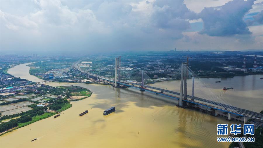 當日,中鐵十一局承建的粵港澳大灣區(qū)基礎設施“硬聯(lián)通”重點工程——廣州南沙港鐵路跨西江特大斜拉橋完成最后一組斜拉索吊裝,大橋預計在7月底合龍。該橋位于廣東佛山市和江門市交界處,全長1117.5米。