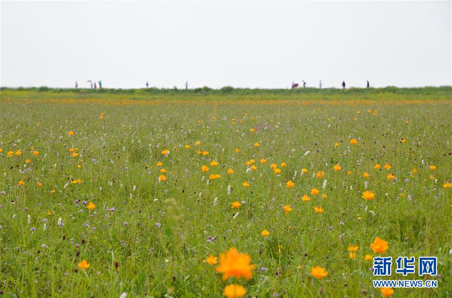 7月22日,游客在金蓮川草原上游玩。金蓮川草原位于內(nèi)蒙古自治區(qū)錫林郭勒盟正藍旗,正值盛夏,金蓮川草原上鮮花綻放,景色宜人。新華社記者徐欽攝