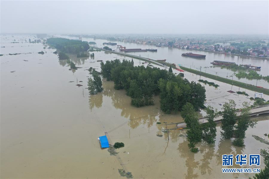 7月21日拍攝的被淹的南京市高淳區(qū)陽江鎮(zhèn)勝利圩(無人機(jī)照片)。新華社記者季春鵬攝