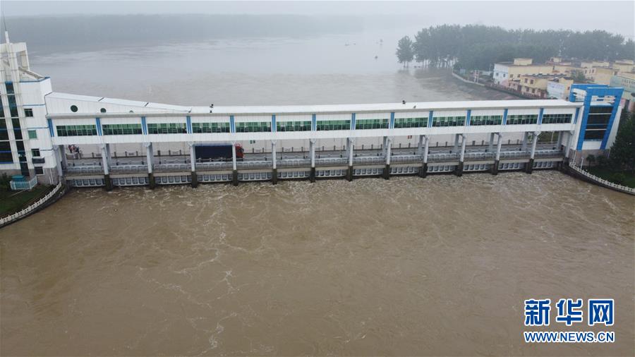 這是7月23日在安徽省阜南縣拍攝的正在關(guān)閘的淮河王家壩閘(無(wú)人機(jī)照片)。當(dāng)日13時(shí),淮河干流王家壩閘關(guān)閘,停止向蒙洼蓄洪區(qū)泄洪。新華社記者張端攝