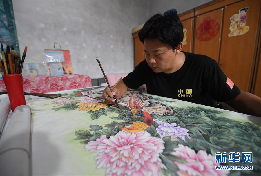 7月22日,王紅彬在家中創(chuàng)作工筆畫。新華社記者朱旭東攝