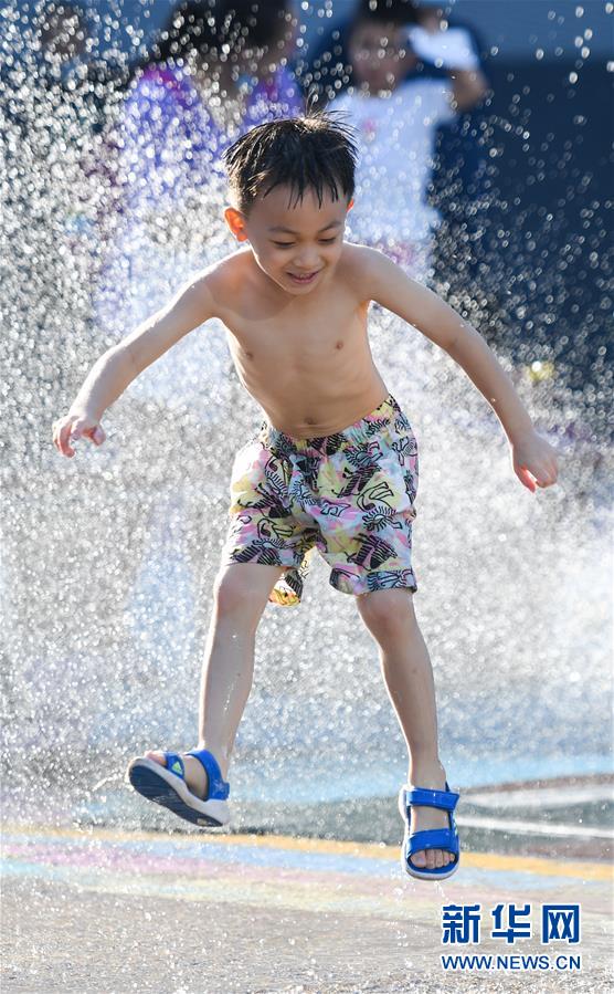 7月24日,一名小男孩在北京華熙LIVE·五棵松商業(yè)街區(qū)的一處噴泉戲水。北京市氣象局7月24日傍晚發(fā)布稱(chēng),24日截至16時(shí)30分,平原大部分地區(qū)出現(xiàn)37℃以上高溫天氣,局地氣溫超過(guò)40℃。北京市已于23日發(fā)布高溫藍(lán)色預(yù)警,預(yù)計(jì)25日全市大部分地區(qū)日最高氣溫仍將達(dá)35℃以上。新華社記者陳曄華攝