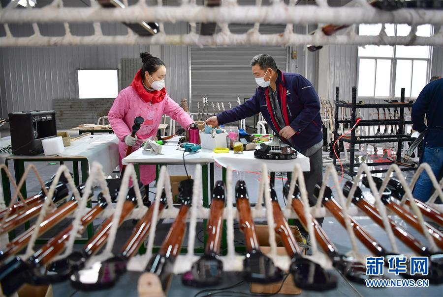 在陜西漢中市城固縣博望街道辦事處江灣社區(qū)一家樂器廠內(nèi),工人在制作貝斯(3月12日攝)。陜南地區(qū)地處秦巴山區(qū),是陜西脫貧攻堅(jiān)的主戰(zhàn)場。近年來,陜南各縣區(qū)因地制宜、精準(zhǔn)施策,通過發(fā)展社區(qū)工廠、特色種植、旅游扶貧、技能培訓(xùn)、電商帶貨等措施,促進(jìn)多種產(chǎn)業(yè)發(fā)展,助力農(nóng)民增收。新華社記者邵瑞攝
