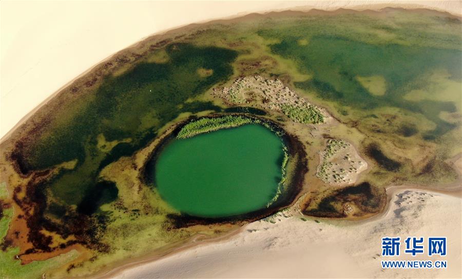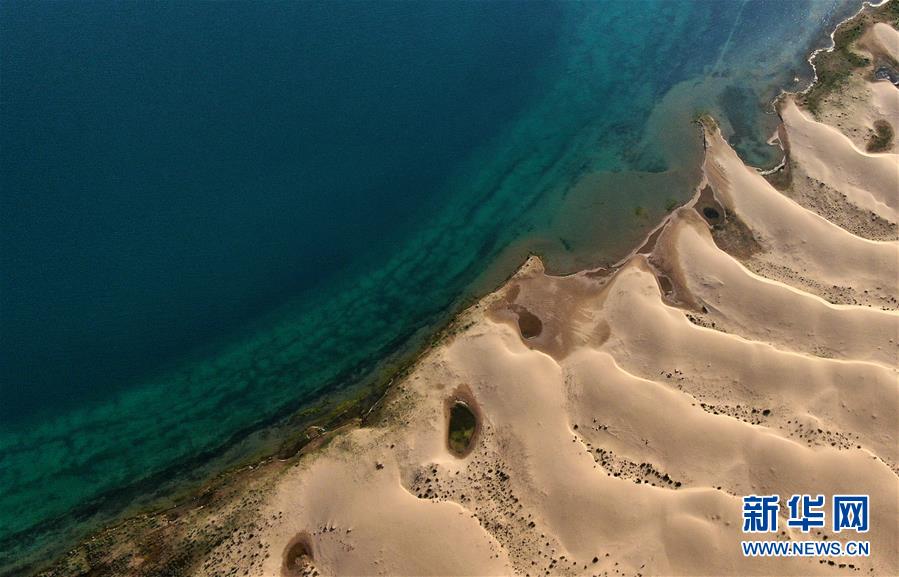 這是7月28日拍攝的青海湖沙島一隅(無(wú)人機(jī)照片)。盛夏傍晚,位于青海湖東北部的沙島,島內(nèi)湖泊星羅棋布,沙丘連綿起伏,風(fēng)景別致。金沙與湖水掩映,在陽(yáng)光的勾勒下形成一幅美麗的畫(huà)卷。新華社記者吳剛攝