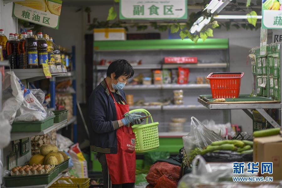 7月30日,在烏魯木齊經(jīng)濟(jì)技術(shù)開發(fā)區(qū)(頭屯河區(qū))天鵝湖社區(qū)一家超市,商販按照住戶的訂單配送果蔬。新華社記者趙戈攝