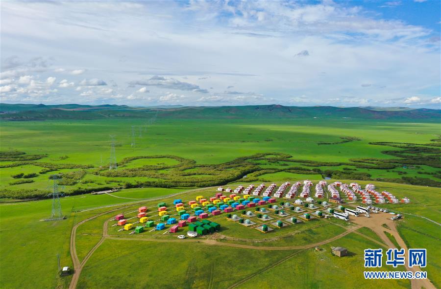 這是呼倫貝爾陳巴爾虎旗天下草原游牧部落一景(8月3日攝,無人機照片)。今年暑期,內蒙古呼倫貝爾通過暫行周末2.5天彈性休假工作制度,發(fā)放旅游、餐飲消費券,景區(qū)推出優(yōu)惠促銷活動等措施,提振當?shù)芈糜问袌?。新華社記者徐欽攝
