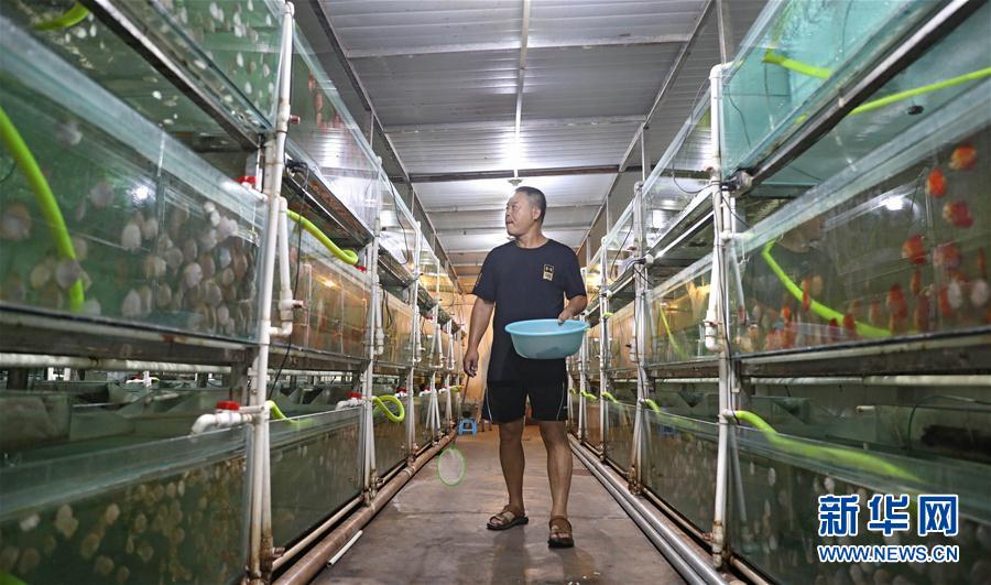 近年來,在遼寧省鞍山市寧遠(yuǎn)街道張忠堡村,許多村民投身觀賞魚養(yǎng)殖業(yè),當(dāng)?shù)夭扇 皡f(xié)會+合作社+農(nóng)戶”模式,利用鞍山三臺子觀賞魚交易中心平臺,將養(yǎng)殖的觀賞魚銷往東北三省以及河北、內(nèi)蒙古、天津等地。小小觀賞魚,如今已成為村民重要的致富手段。新華社記者姚劍鋒攝