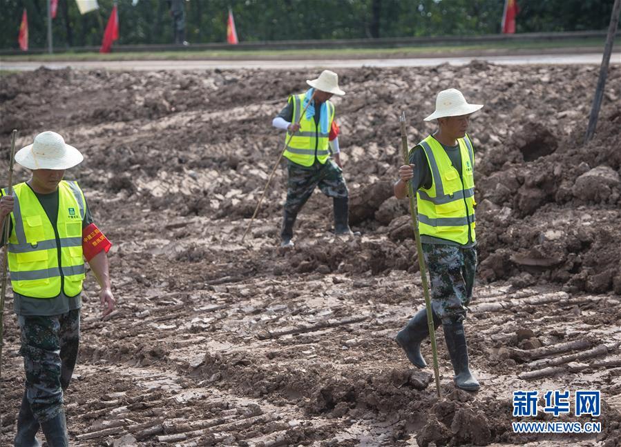 8月5日,夏德勤穿上救生衣準備去堤壩的迎水面巡查。新華社記者肖藝九攝