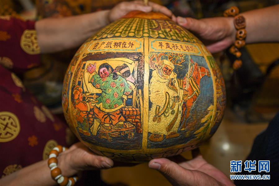這是侯景偉創(chuàng)作的民俗主題葫蘆工藝品(8月5日攝)。今年55歲的吉林四平人侯景偉自幼與家人學(xué)習(xí)雕刻、烙畫藝術(shù)。經(jīng)過多年潛心研究,他將浮雕和烙畫工藝相結(jié)合,通過拋光、起稿、雕刻、烙燙、套色等十余道工藝,制作展現(xiàn)傳統(tǒng)文化、民俗故事的葫蘆工藝品。2020年,侯景偉被評為四平市非物質(zhì)文化遺產(chǎn)項(xiàng)目侯氏葫蘆雕刻烙畫代表性傳承人。他說:“希望有更多人加入到非遺傳承隊(duì)伍中,讓小葫蘆‘講’出更多民俗故事。”新華社記者張楠攝