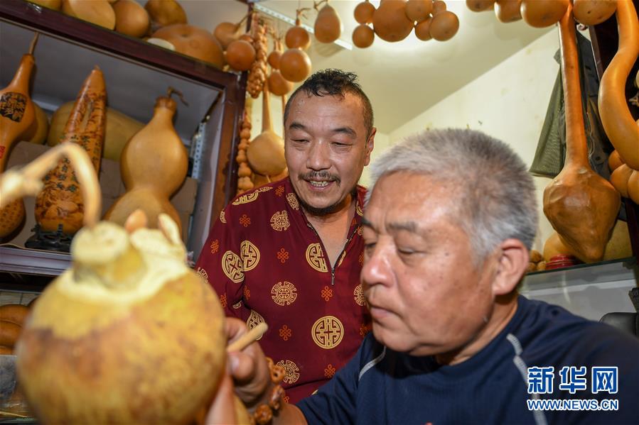 8月5日,侯景偉(左)向徒弟金志勇傳授技藝。今年55歲的吉林四平人侯景偉自幼與家人學(xué)習(xí)雕刻、烙畫藝術(shù)。經(jīng)過多年潛心研究,他將浮雕和烙畫工藝相結(jié)合,通過拋光、起稿、雕刻、烙燙、套色等十余道工藝,制作展現(xiàn)傳統(tǒng)文化、民俗故事的葫蘆工藝品。2020年,侯景偉被評為四平市非物質(zhì)文化遺產(chǎn)項(xiàng)目侯氏葫蘆雕刻烙畫代表性傳承人。他說:“希望有更多人加入到非遺傳承隊(duì)伍中,讓小葫蘆‘講’出更多民俗故事?!毙氯A社記者張楠攝