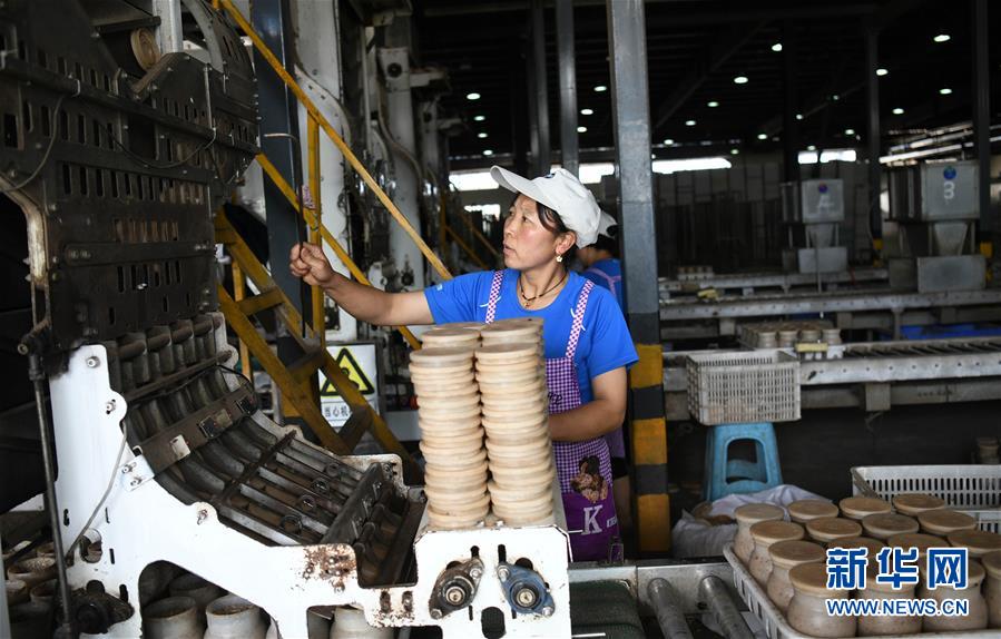 8月6日,工作人員在威寧雪榕生物科技有限公司制作菌棒。新華社記者金良快攝