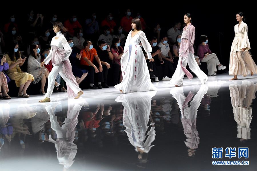 8月6日,模特在時裝秀上展示時裝。當日,2020中國(河南)國際大學生時裝周舉行河南大學生優(yōu)秀服裝設(shè)計專場展示。8月5日至7日,2020中國(河南)國際大學生時裝周在河南省新密市豫發(fā)密蘭小鎮(zhèn)舉行。新華社記者朱祥攝