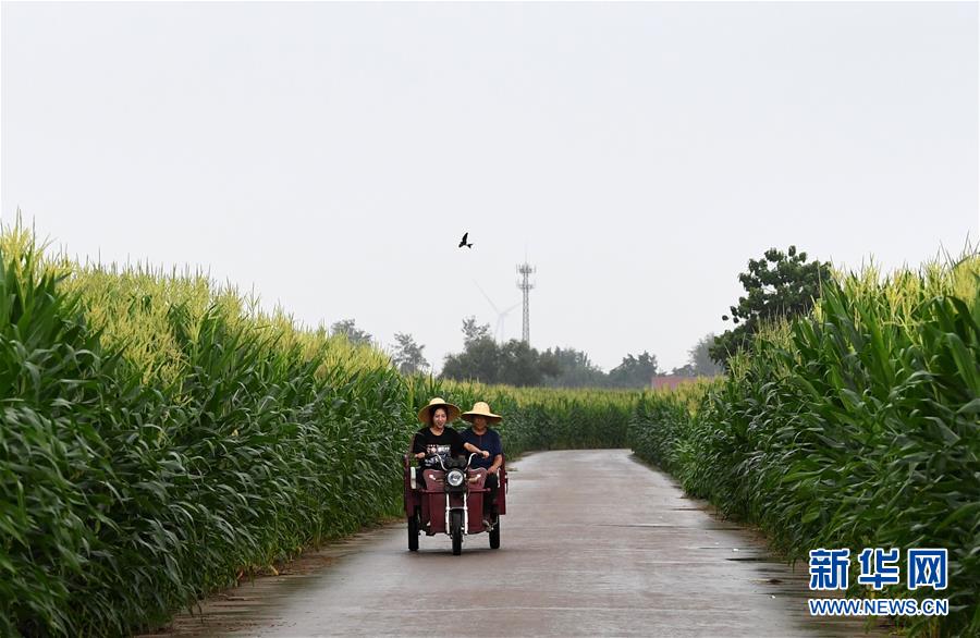 8月5日,王曉楠(左)駕駛三輪車載著父親回家。新華社記者郝源攝
