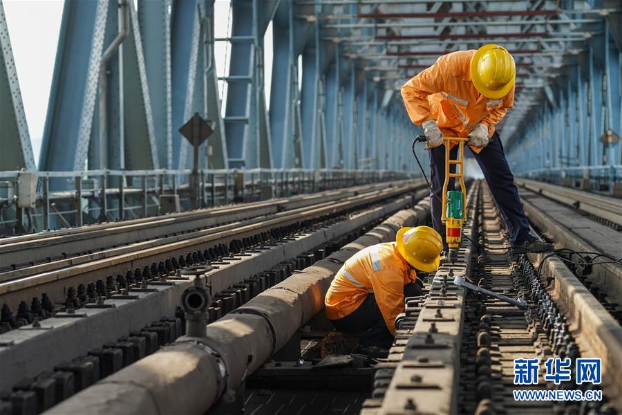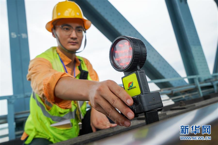 連日來,江蘇省南京市持續(xù)高溫天氣,在中國鐵路上海局集團有限公司南京橋工段南京大橋車間,近80名橋隧工不畏高溫酷暑,堅守崗位,確保暑運列車的安全運行。戴著安全帽,穿著防護服,橋隧工們趁著沒有列車運行的“天窗時間”,每天用腳步“丈量”大橋,保障長江大橋鐵路橋運輸暢通、安全。