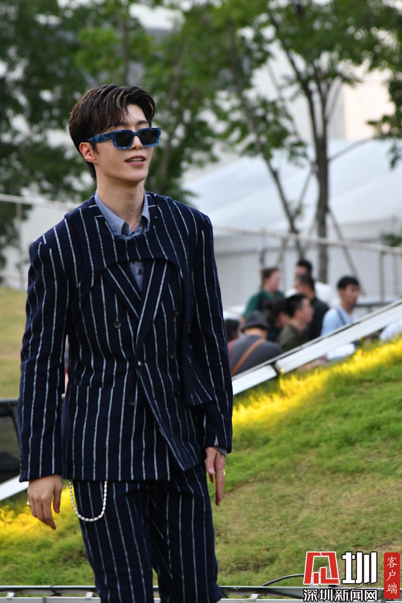 2020年8月6日,上海,LV 2021春夏男裝大秀,吳亦凡、迪麗熱巴、劉昊然、朱一龍、范丞丞、歐陽娜娜、李汶翰、鐘楚曦、萬茜、王子異、虞書欣、白敬亭、奚夢瑤、劉暢等明星亮相,吳亦凡身穿油畫短袖襯衫搭配長褲,帥氣似大佬。范丞丞身穿藍(lán)色條紋西裝搭配墨鏡貴氣十足。