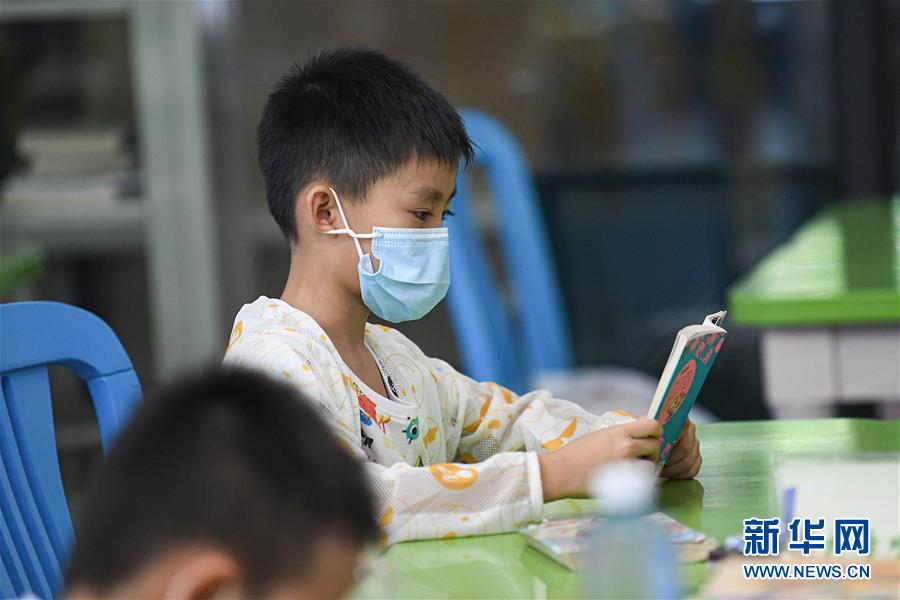 8月8日,小朋友在位于海口的海南省圖書(shū)館閱讀書(shū)籍。新華社記者 蒲曉旭 攝
