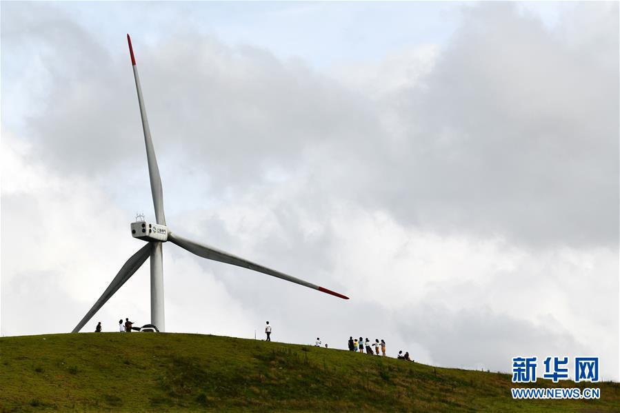8月8日,游客在貴州省龍里油畫大草原旅游觀光。近日,貴州省黔南布依族苗族自治州龍里縣境內(nèi)氣候宜人,龍里油畫大草原、“龍門鎮(zhèn)”武俠文化主題景區(qū)等景點吸引眾多游客前來觀光旅游。新華社記者楊文斌攝。