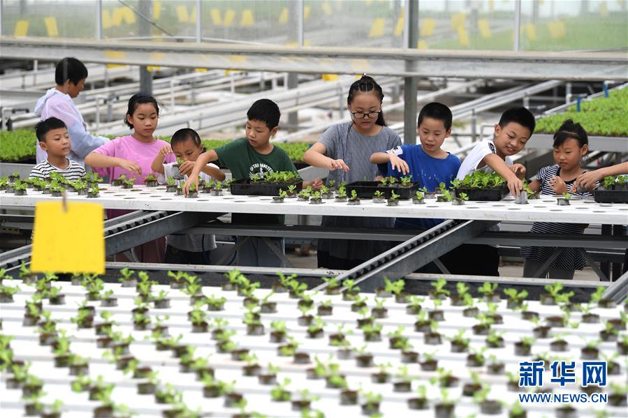 8月9日,在花崗鎮(zhèn)現(xiàn)代農業(yè)示范區(qū)一家蔬菜種植企業(yè)內,小朋友在體驗移栽蔬菜幼苗。當日,安徽省肥西縣花崗鎮(zhèn)開展暑期“親近自然體驗田園”活動,邀請轄區(qū)兒童參觀花崗鎮(zhèn)現(xiàn)代農業(yè)示范區(qū),感受現(xiàn)代農業(yè)的魅力。新華社記者劉軍喜攝。