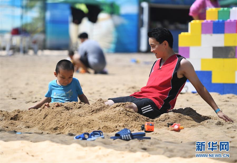8月9日,市民在南宮五洲植物樂園戶外戲水區(qū)旁的沙灘上玩沙子。近期,在做好新冠肺炎疫情防控的前提下,位于北京市豐臺(tái)區(qū)的南宮五洲植物樂園戶外戲水區(qū)對(duì)外開放。市民在戲水的同時(shí)還可以在沙灘上畫沙畫、在新游樂項(xiàng)目“叢林網(wǎng)繩”里穿梭跳躍,豐富暑期生活。新華社記者任超攝。