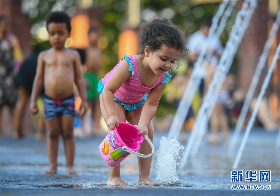 8月8日,一名兒童在德國法蘭克福一處噴泉內(nèi)戲水。 當(dāng)日,法蘭克福遭遇高溫天氣,最高氣溫達37攝氏度。 新華社記者 逯陽 攝