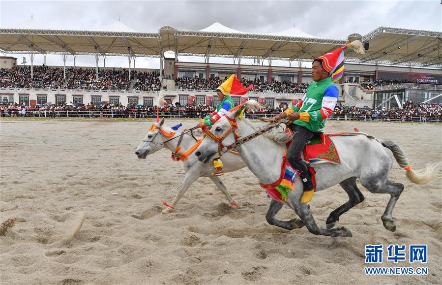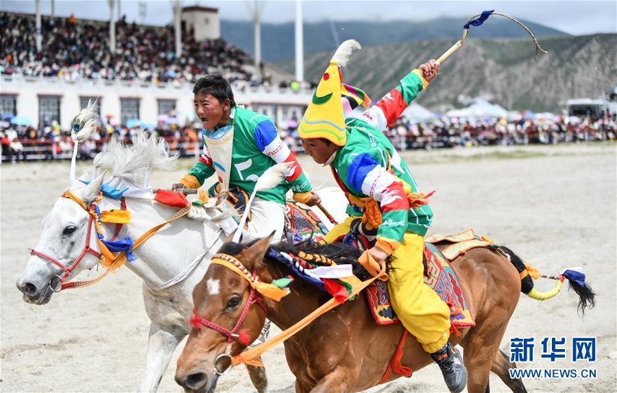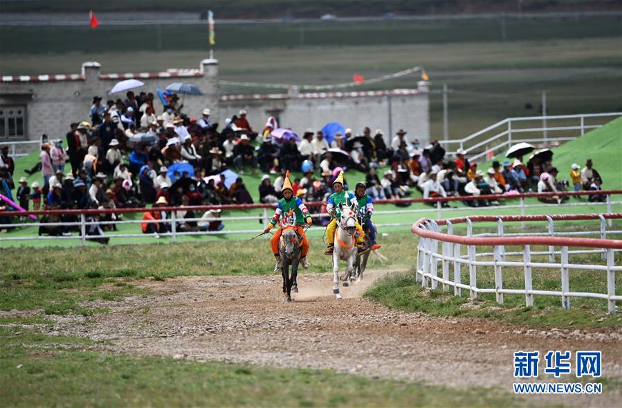 8月10日,騎手馳騁在當(dāng)雄縣賽馬場(chǎng)。新華社記者晉美多吉攝。