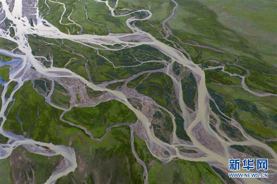 俯瞰泥拉壩濕地里發(fā)辮般的河流,該濕地泥炭富集、水系發(fā)達(dá)(8月9日攝,無人機(jī)照片)。新華社記者江宏景攝。