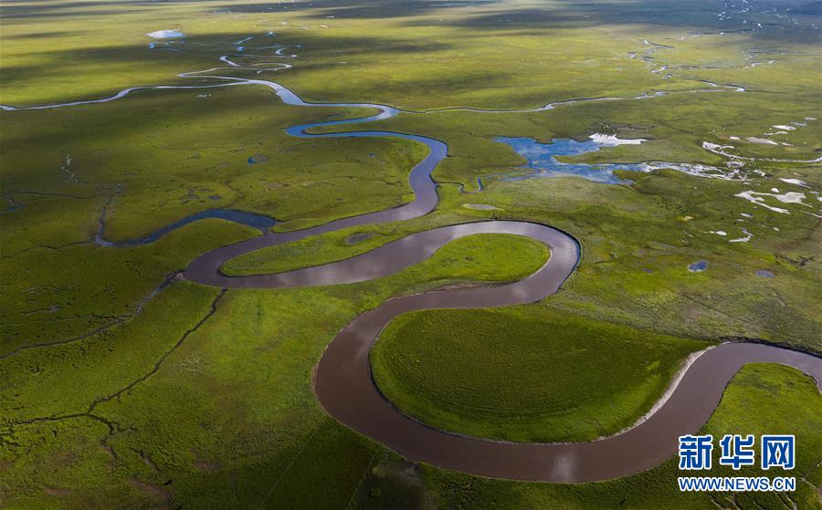 俯瞰泥拉壩濕地里彎曲的河流,該濕地泥炭富集、水系發(fā)達(dá)(8月9日攝,無人機(jī)照片)。新華社記者江宏景攝。