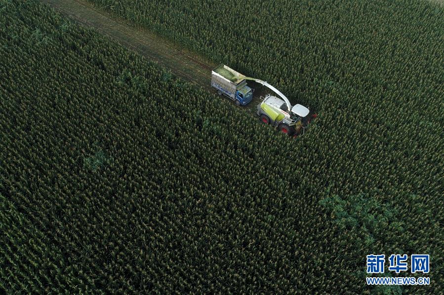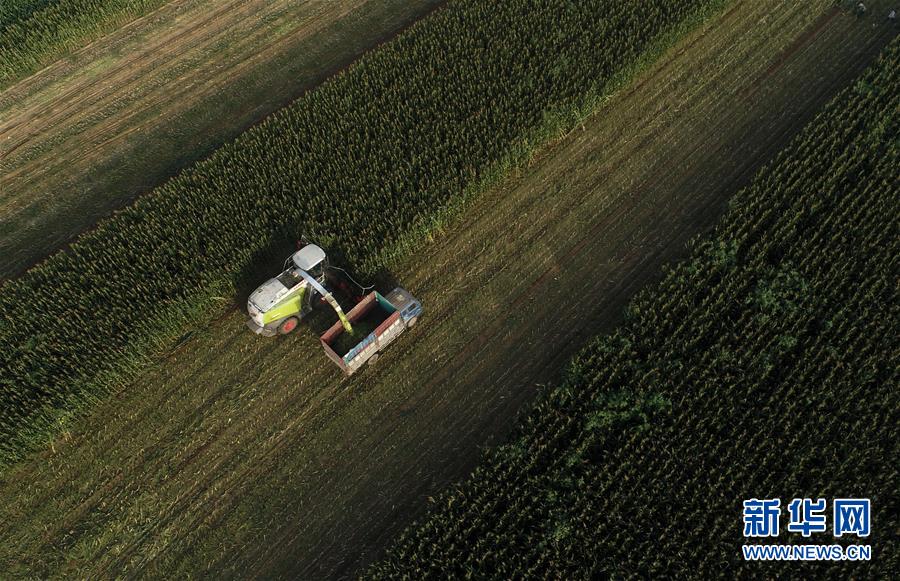 8月11日,灤南縣馬城鎮(zhèn)湛店子村的農(nóng)民使用大型機(jī)械收獲青貯玉米(無人機(jī)照片)。近日,河北省灤南縣的12萬畝青貯玉米陸續(xù)開始收獲,為當(dāng)?shù)啬膛pB(yǎng)殖提供新鮮優(yōu)質(zhì)飼料。作為河北省奶牛養(yǎng)殖大縣,灤南縣近年來大力推廣奶牛青貯玉米喂養(yǎng)模式,引導(dǎo)農(nóng)民種植青貯玉米,促進(jìn)農(nóng)民增收。新華社記者楊世堯攝