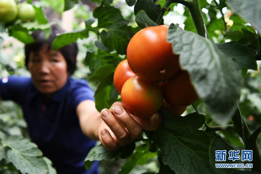 8月11日,在甘肅省臨夏回族自治州臨夏縣先鋒鄉(xiāng)前韓村,搬遷戶韓貴蘭在日光溫室內采摘西紅柿。近年來,甘肅省臨夏回族自治州臨夏縣把易地扶貧搬遷作為打贏脫貧攻堅戰(zhàn)的重要任務,科學推進易地扶貧搬遷和脫貧攻堅工作。為了讓搬遷群眾能夠安居樂業(yè),當?shù)卣⒅胤龀趾罄m(xù)產業(yè)發(fā)展,引導搬遷群眾發(fā)展日光溫室、布鞋加工、觀光農業(yè)、特色種養(yǎng)殖等產業(yè),幫助搬遷群眾實現(xiàn)就近就業(yè)、拓寬增收渠道,確保搬遷群眾“搬得出、穩(wěn)得住、有事做、能致富”。新華社記者陳斌攝