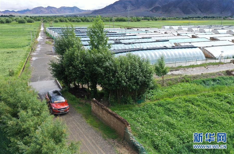 姐妹倆開著剛買的小汽車將大棚出產(chǎn)的蔬菜運(yùn)往縣里的店鋪(無人機(jī)照片,8月3日攝)。新華社記者 李賀 攝