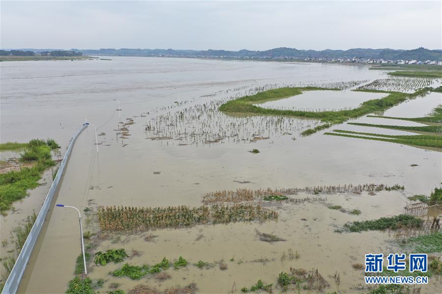 8月12日,重慶市潼南區(qū)桂林街道雙壩村蔬菜基地,部分低洼地帶的農(nóng)作物被洪水淹沒(méi)(無(wú)人機(jī)照片)。受強(qiáng)降雨影響,涪江潼南段迎來(lái)過(guò)境洪水。新華社記者 黃偉 攝