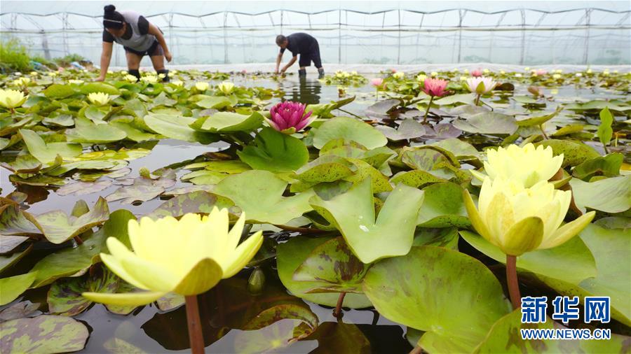 8月12日,河北省灤州市茨榆坨鎮(zhèn)草塘坨村花農(nóng)在大棚內(nèi)打理種植的蓮花。近年來(lái),河北省灤州市茨榆坨鎮(zhèn)結(jié)合市場(chǎng)需求,引導(dǎo)農(nóng)民發(fā)展玫瑰、蓮花等花卉規(guī)?;N植,通過(guò)“線上”和“線下”相結(jié)合的銷售模式,進(jìn)入北京、天津等地花卉市場(chǎng),在扮靚城鄉(xiāng)的同時(shí)為種植戶帶來(lái)良好收益。新華社記者 牟宇 攝