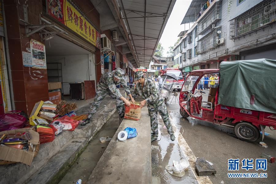 8月13日,在重慶市潼南區(qū)玉溪鎮(zhèn),涪江水位持續(xù)上漲,應(yīng)急救援人員幫助老百姓轉(zhuǎn)移物品。受上游強(qiáng)降雨影響,嘉陵江近日出現(xiàn)明顯漲水過程,“嘉陵江2020年第1號洪水”已在嘉陵江支流涪江形成。重慶市正式啟動洪水防御Ⅱ級應(yīng)急響應(yīng)。據(jù)初步統(tǒng)計,截至13日16時30分,位于涪江畔的重慶市潼南區(qū),沿涪江7個鎮(zhèn)街不同程度受災(zāi),受災(zāi)人數(shù)8209人,轉(zhuǎn)移人口6658人,農(nóng)作物受災(zāi)面積5579畝。新華社記者黃偉攝