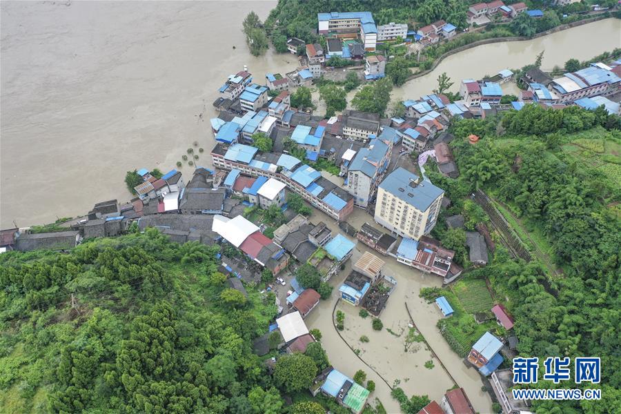 8月13日,在重慶市潼南區(qū)米心鎮(zhèn),涪江水位明顯上漲,洪水倒灌進(jìn)場鎮(zhèn)(無人機(jī)照片)。受上游強(qiáng)降雨影響,嘉陵江近日出現(xiàn)明顯漲水過程,“嘉陵江2020年第1號洪水”已在嘉陵江支流涪江形成。重慶市正式啟動洪水防御Ⅱ級應(yīng)急響應(yīng)。據(jù)初步統(tǒng)計,截至13日16時30分,位于涪江畔的重慶市潼南區(qū),沿涪江7個鎮(zhèn)街不同程度受災(zāi),受災(zāi)人數(shù)8209人,轉(zhuǎn)移人口6658人,農(nóng)作物受災(zāi)面積5579畝。新華社記者黃偉攝