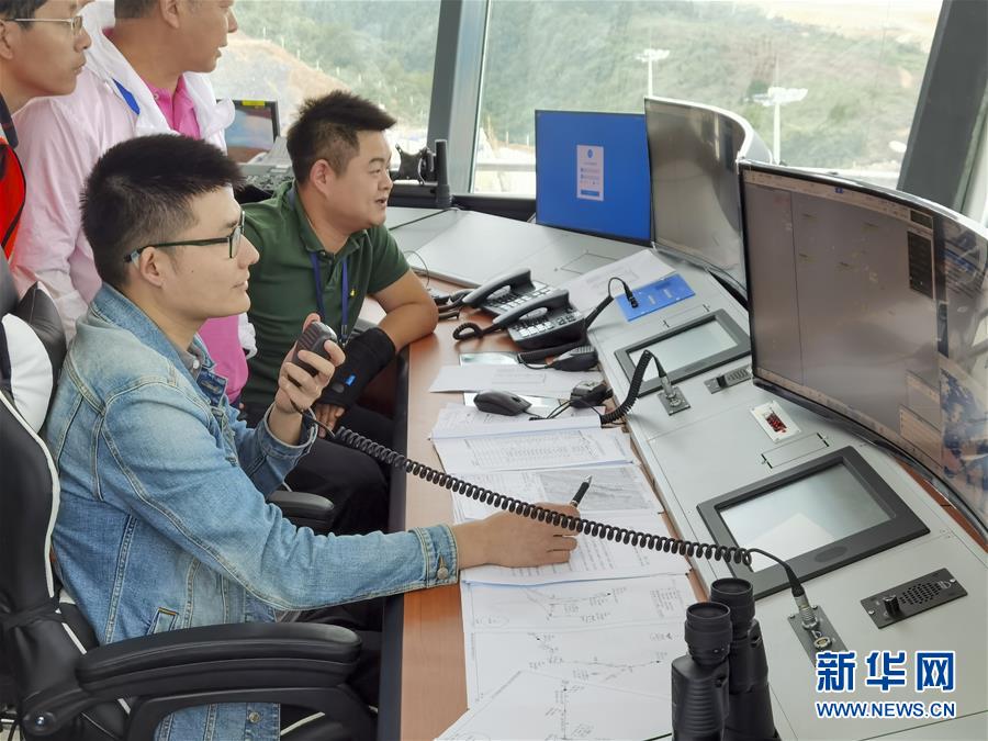 8月13日,參加校飛的地面工作人員在仙女山機場的塔臺工作區(qū)內(nèi)工作。當(dāng)日,位于重慶武隆區(qū)的仙女山機場飛行校驗工作正式開始。據(jù)介紹,重慶仙女山機場校飛時間大約需3至5天。重慶仙女山機場于2018年4月全面開工,機場跑道長2800米、寬45米,航站樓總面積6000平方米,投用后可滿足每年60萬人次的旅客吞吐量。新華社記者劉潺攝