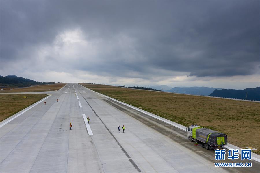 8月12日,校飛正式開始前一天,工作人員對仙女山機場跑道路面進行清潔(無人機照片)。8月13日,位于重慶武隆區(qū)的仙女山機場飛行校驗工作正式開始。據(jù)介紹,重慶仙女山機場校飛時間大約需3至5天。重慶仙女山機場于2018年4月全面開工,機場跑道長2800米、寬45米,航站樓總面積6000平方米,投用后可滿足每年60萬人次的旅客吞吐量。新華社記者劉潺攝