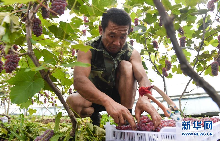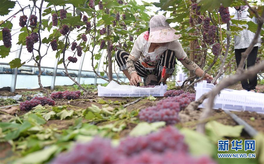 8月13日,在吉林省磐石市煙筒山鎮(zhèn)民主村,村民在葡萄大棚內(nèi)采摘葡萄。時下,吉林省磐石市煙筒山鎮(zhèn)棚膜葡萄園區(qū)內(nèi)的大棚葡萄進入采摘季,農(nóng)民喜獲豐收。近年來,當(dāng)?shù)赝ㄟ^“共創(chuàng)”與“扶持”相結(jié)合的模式大力發(fā)展特色農(nóng)業(yè),建設(shè)葡萄種植大棚300余棟,以此帶動村集體經(jīng)濟發(fā)展,助力農(nóng)民增收致富。新華社記者許暢攝