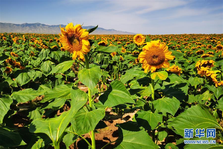 甘肅景泰:十萬(wàn)畝向日葵“笑”迎豐收