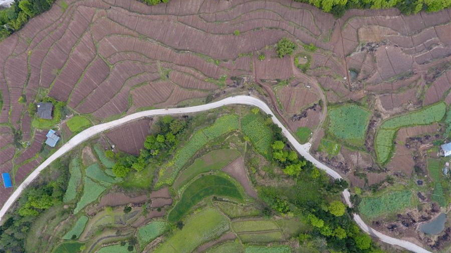 江蘇宿遷三臺(tái)山森林公園鮮花競相開放,空中俯瞰,好似鋪撒在大地上的五彩畫卷。