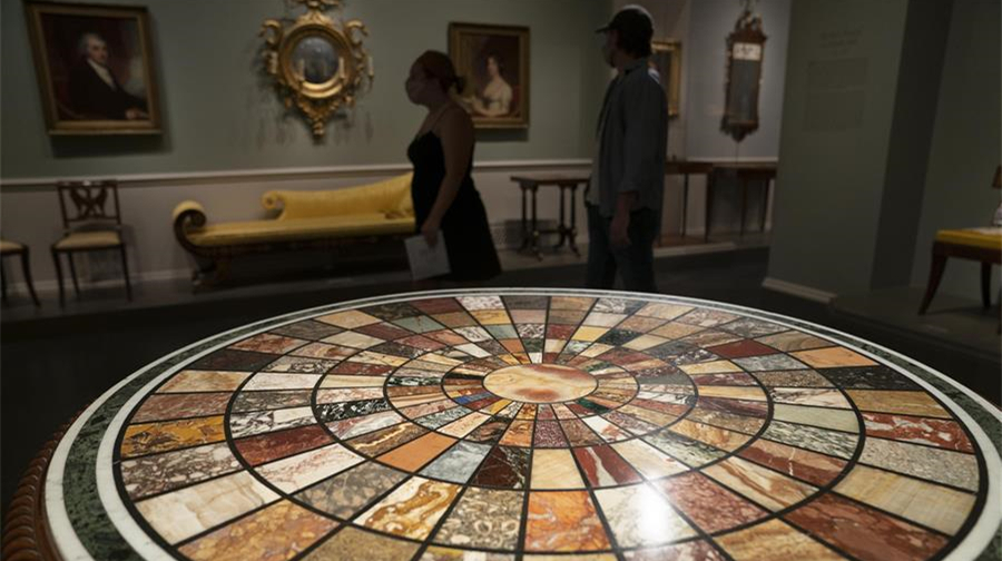 7月20日,觀眾在位于美國華盛頓的國家美術(shù)館參觀。當日,美國國家美術(shù)館西館部分展廳開始重新對公眾開放。