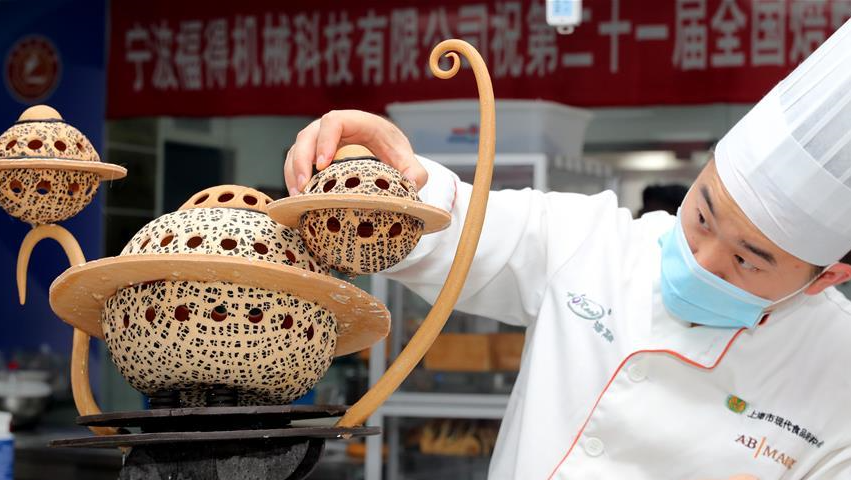 當(dāng)日,第二十一屆全國(guó)焙烤職業(yè)技能競(jìng)賽上海賽區(qū)選拔賽,在上海市現(xiàn)代食品職業(yè)技能培訓(xùn)中心舉行,來(lái)自上海、江蘇、浙江等地的近60名焙烤行業(yè)技師,在藝術(shù)面包、傳統(tǒng)糕點(diǎn)、糖藝和藝術(shù)巧克力等項(xiàng)目中進(jìn)行比拼,在充滿焙烤香氣的賽場(chǎng)上展現(xiàn)技藝。