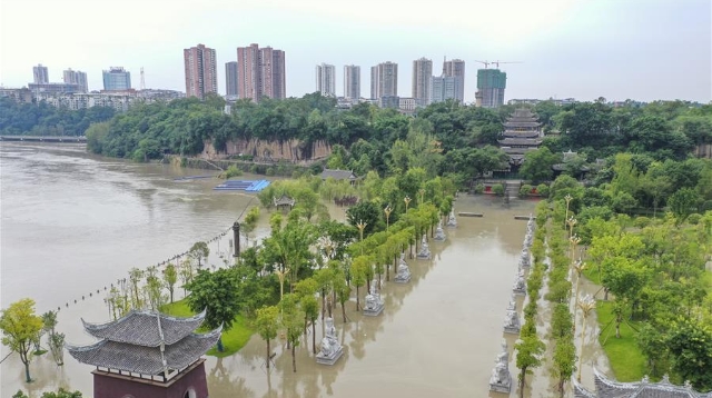 受強(qiáng)降雨影響,涪江潼南段迎來(lái)過(guò)境洪水。截至12日下午5時(shí),涪江潼南城區(qū)段最高水位238.5米,超警戒水位0.5米,低于保證水位(240米)。