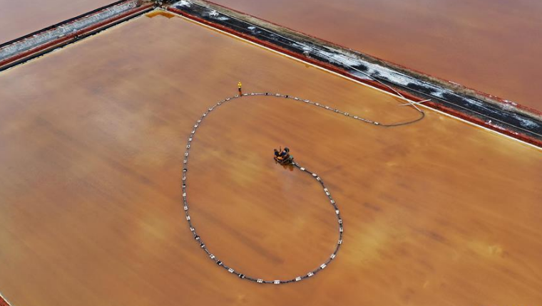 2019年7月9日,漁民們?cè)诮K連云港沿海地區(qū)海邊的灘涂上將剛收獲的海蟶運(yùn)送上岸裝箱外運(yùn)。
