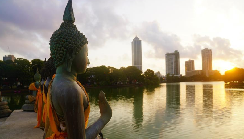在科倫坡貝拉湖上有一座木造樓閣——水中廟。木造建筑上面覆蓋著藍(lán)瓦,外圍環(huán)繞著線(xiàn)條優(yōu)美的佛像。